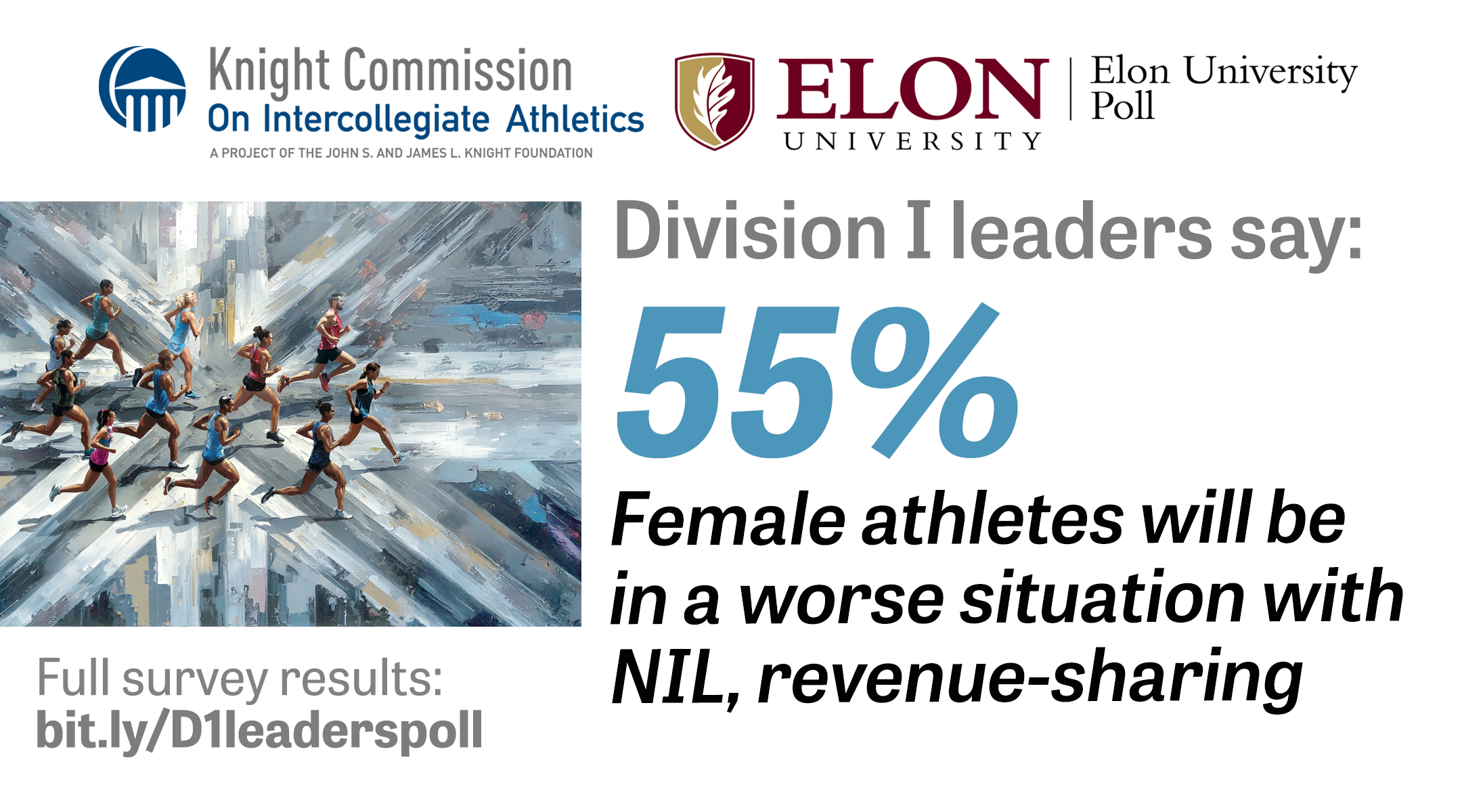 • A majority of leaders (55%) predict that Division I female athletes will be worse off under the new rules. This concern was especially strong among university presidents (64%) and faculty athletics representatives (69%).