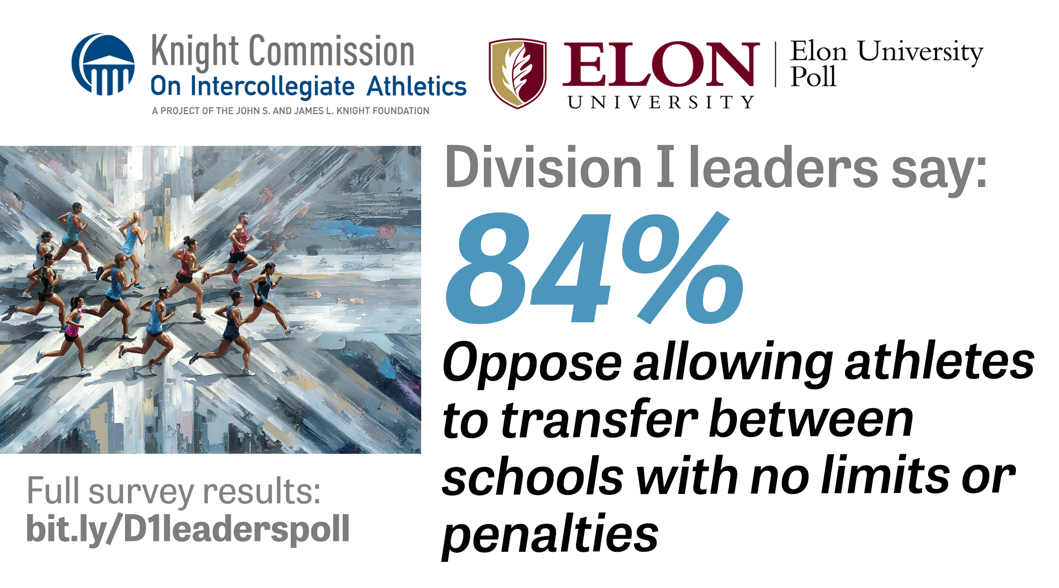 • More than 8 in 10 campus leaders (86%) say the transfer portal is having a negative effect on Division I sports and leaders are similarly unified in opposing current rules (84%) that allow athletes to transfer as often as they choose with immediate eligibility at their new school.