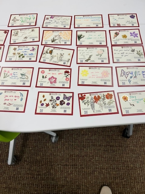 When faculty reached out to Public Health alumni featured on the department’s Wall of Honor, it quickly became clear that many were navigating job loss and professional uncertainty amid significant national changes to public health infrastructure. In response, Elon students, faculty, and families came together for postcard-decorating events, creating messages of encouragement and affirmation for alumni across the country.
