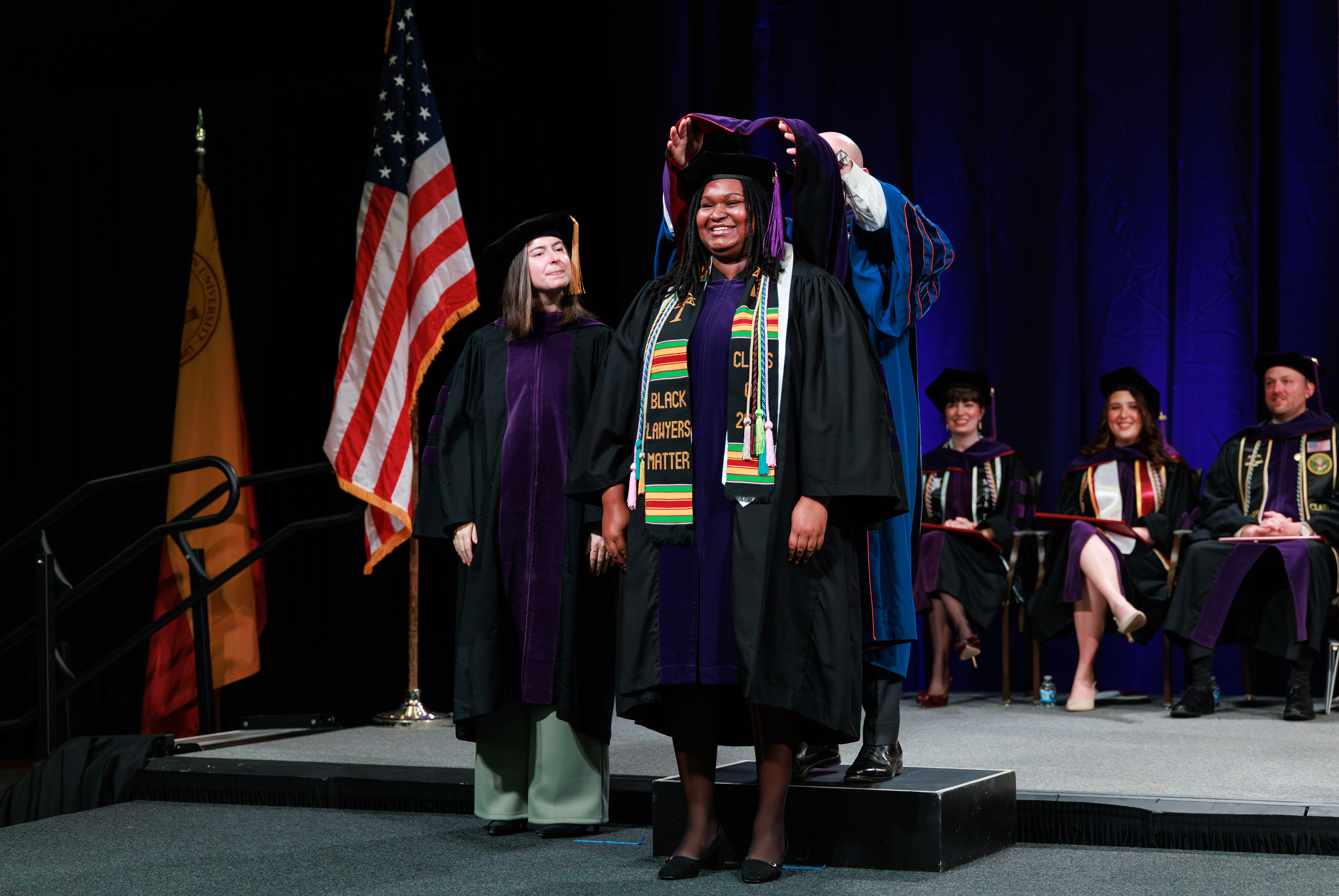 “Whatever your reason, that ‘why’ has carried each of us through challenges like learning how to handle imposter syndrome, our accelerated curriculum, financial pressures and even loss,” he said. “With this Juris Doctor degree, we now can go into our communities, organizations, and workplaces and be the change that we want to see. The world we’re stepping into needs more than just good lawyers. It needs good people who practice law.”