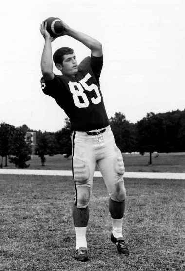 Born in Roanoke, Virginia, McGeorge arrived at Elon College in the late 1960s and quickly became a transformational force on the football field. As a tight end under legendary coach Red Wilson, he rewrote Elon’s receiving records book, ending his career as the school’s career record-holder with 224 receptions for 3,486 yards and 31 touchdowns. The conference MVP also set single-season marks with 65 grabs for 1,081 yards, and single-game records with 15 catches, 285 receiving yards and four touchdowns.