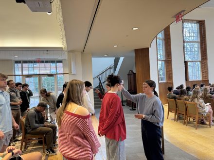 Abby Krause ’26 distributes Ashes on Ash Wednesday 2025