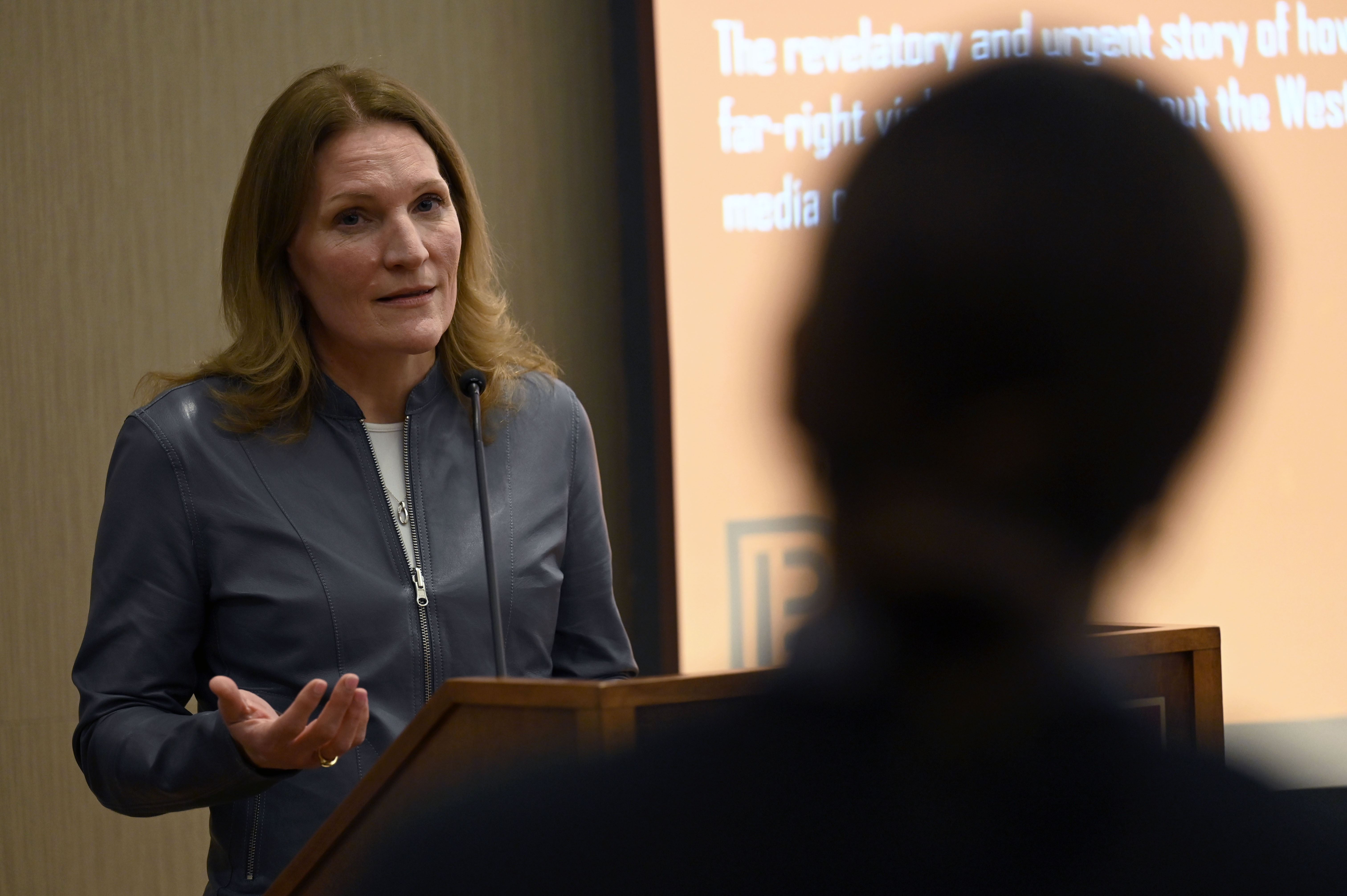Miller-Idriss cited research showing a strong overlap between mass violence and histories of domestic abuse. She told the audience that 60 percent of mass violent attackers in the United States have a documented criminal history of domestic or intimate partner violence, noting that such violence is often underreported and that many datasets do not capture stalking, harassment or online threats.