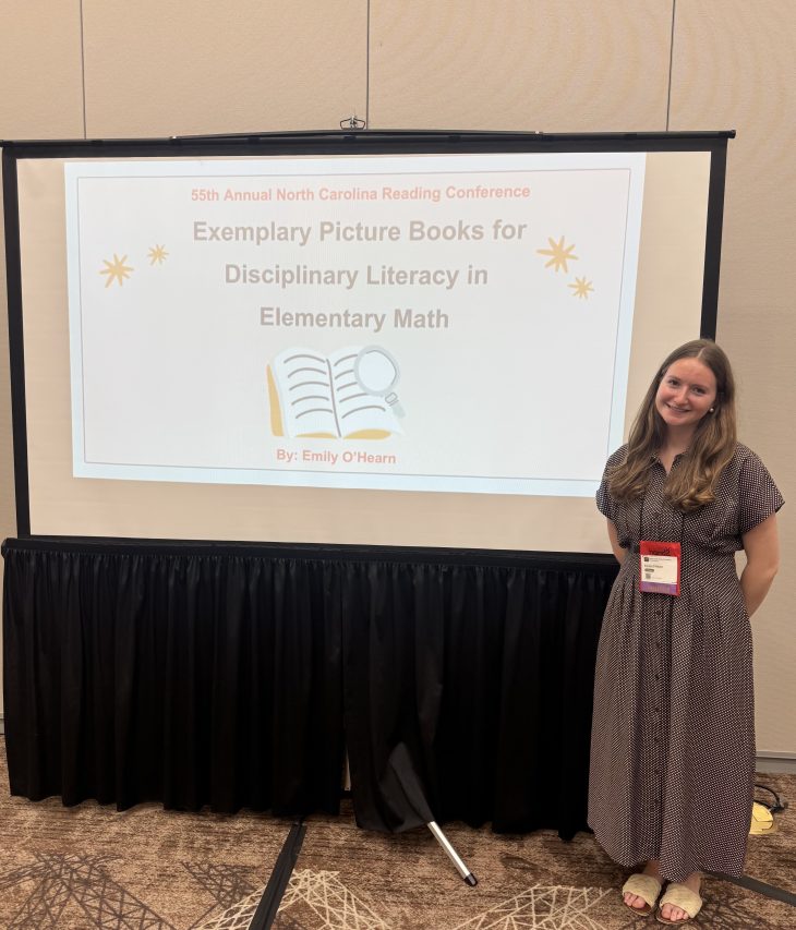 Emily O'Hearn '27 Dr. Jo Watts Williams School of Education Teaching Fellow and Elementary Education major, presented her undergraduate research on math and picture books at the North Carolina Reading Association Annual Conference in Winston-Salem, North Carolina.