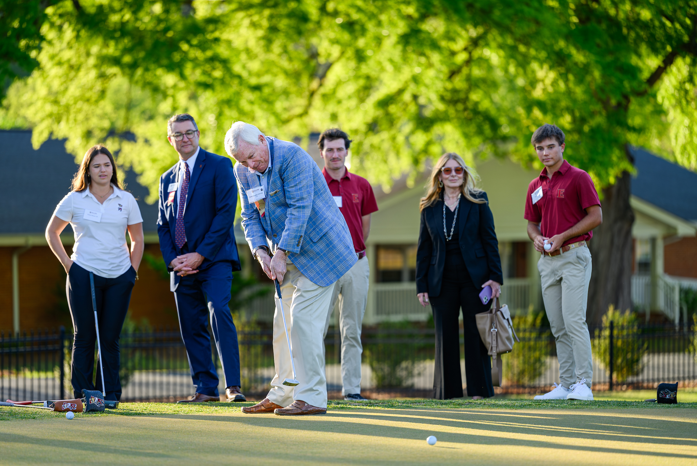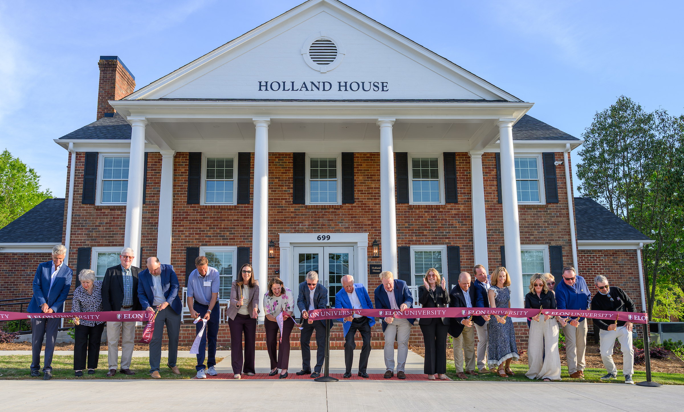 University leaders and student-athletes celebrated a new era for Elon’s Holland House in a ribbon-cutting ceremony this spring that debuted a preeminent home for the Phoenix men’s and women’s golf programs.