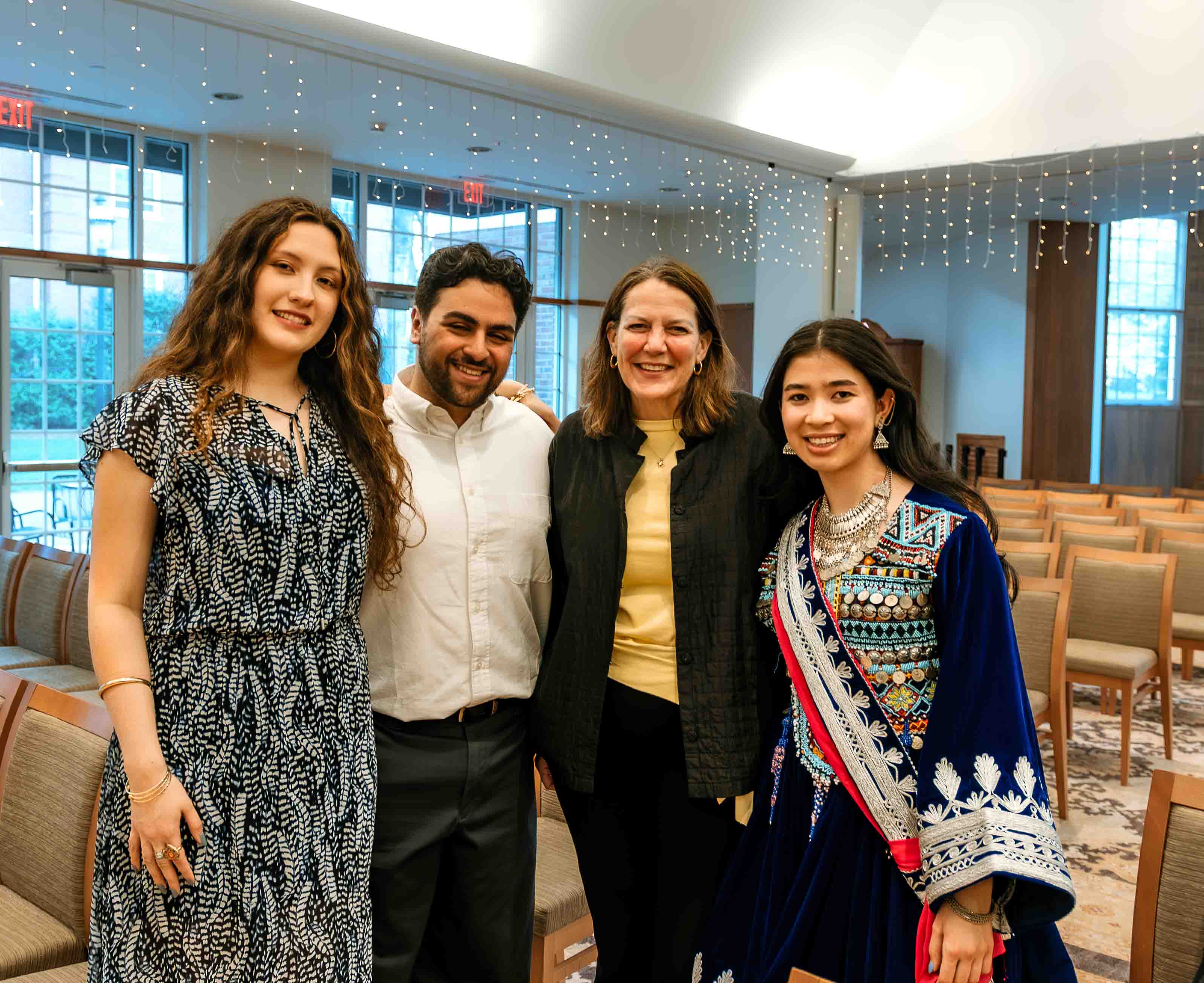 The program opened with a welcome from Rev. Kirstin Boswell, university chaplain and dean of multifaith engagement, and an educational presentation from Truitt Center multifaith interns Omar Khamis and Bella Kuperman, who shared the history and traditions of Eid. Remarks followed from Associate Chaplain for Muslim Life Imam Shane Atkinson, and students Adil Qadeer and Huria Tahiry.