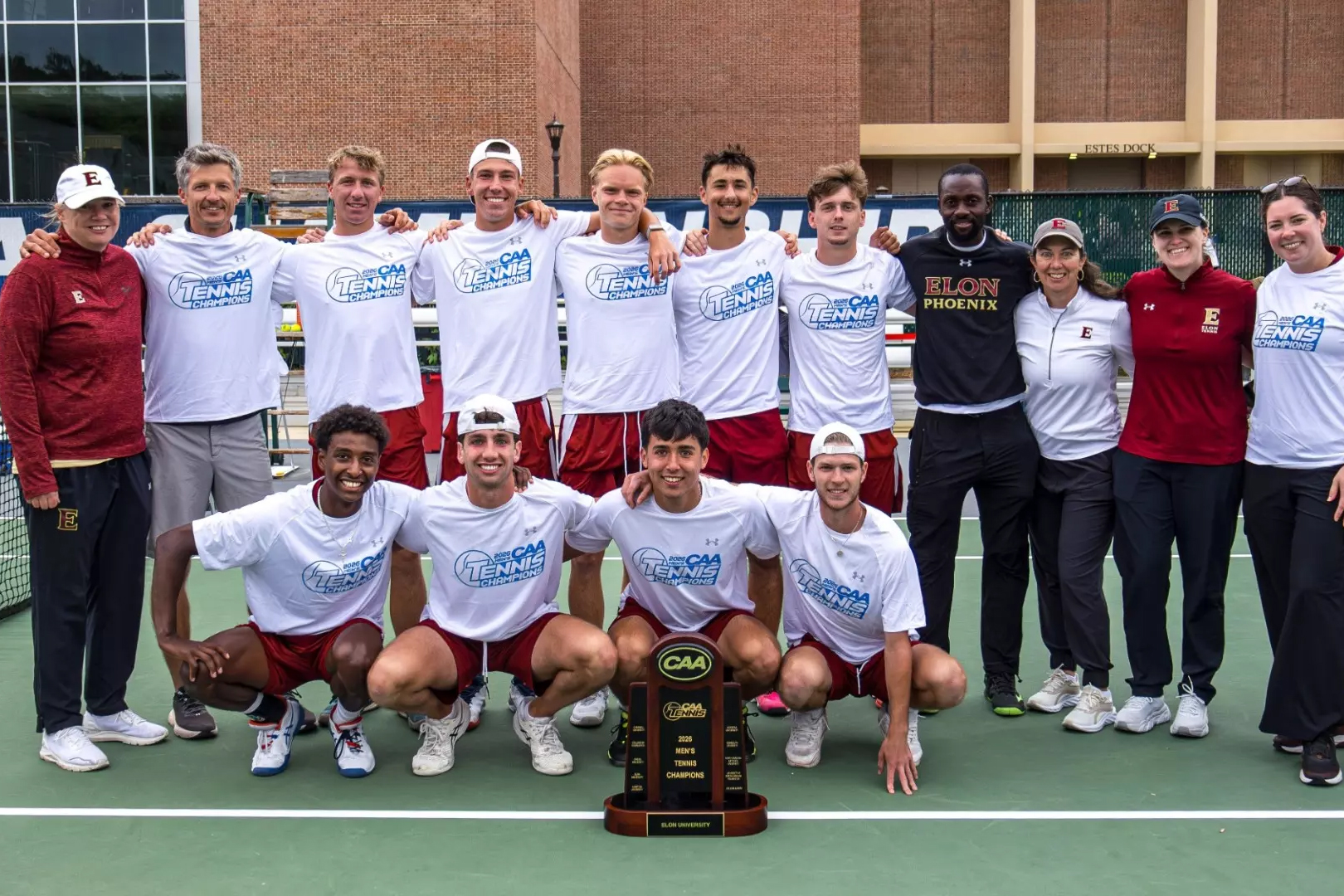 The Elon men’s tennis team dethroned five-time reigning conference champion UNCW on April 19 to win its second Coastal Athletic Association crown, defeating the Seahawks 4-1 in the championship match at the Mackesy Tennis Center in Williamsburg, Virginia.