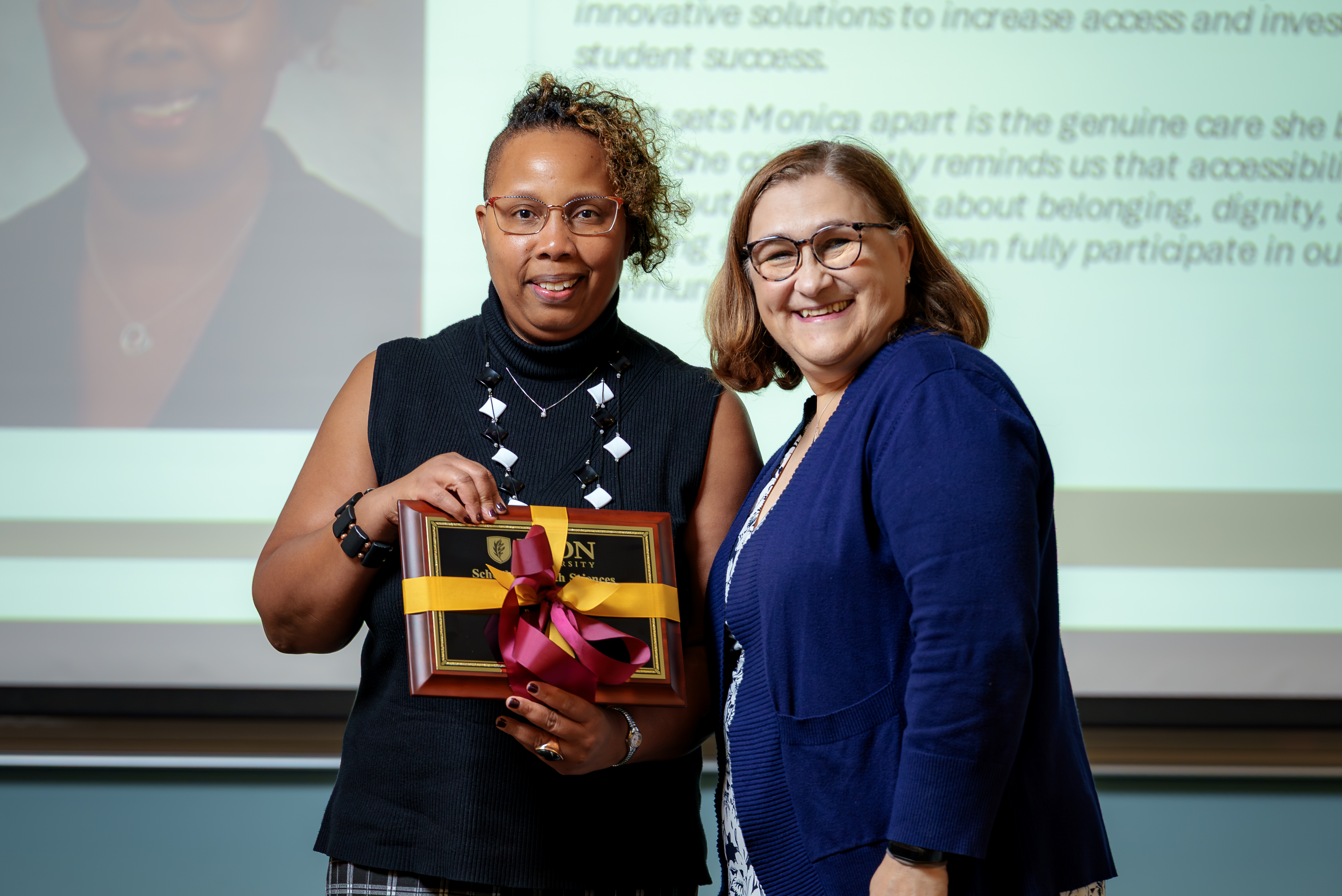 “With more than seventeen years of experience in disability services, Monica has strengthened systems that expand access and opportunity for all learners. She has worked closely with SHS faculty to ensure accommodations are not only timely and appropriate but also integrated thoughtfully into the learning environment,” said Cope. “What sets Monica apart is the genuine care she brings to her work. She consistently reminds us that accessibility is not just about policy—it is about belonging, dignity and ensuring every student can fully participate in our academic community. Through her leadership, advocacy and compassion, Monica has made a lasting impact on the School of Health Sciences and beyond.”