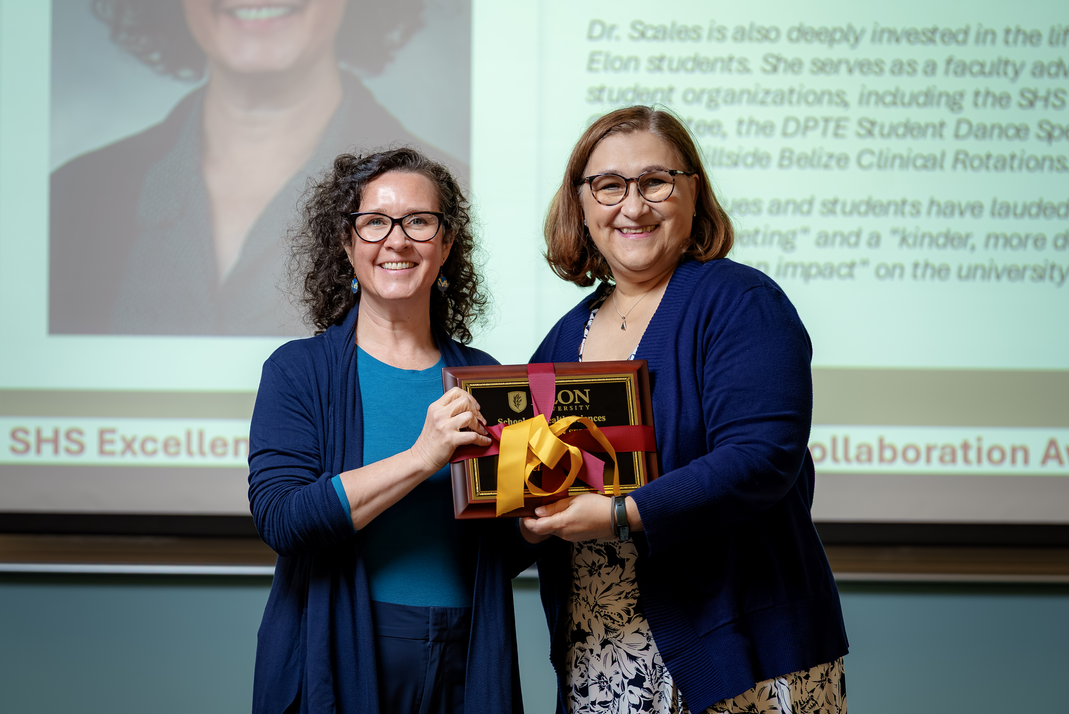 “Scales has demonstrated strong leadership at the university level through her service on the Academic Council, where she represents the School of Health Sciences and will begin serving as chair-elect in August 2025. She also serves as co-chair of the Academic Council’s Service Working Group, helping develop university-wide guidelines and rubrics for faculty service. Her university service further includes work on the Committee on Committees, the Residential Campus Advisory Committee, and the Health Professions Advisory Committee, where she has mentored undergraduate students interested in health careers since 2017,” Fearnow said. “Her breadth of service, from university-wide leadership and policy development to mentorship and student engagement, exemplifies the spirit of service, leadership, and collaboration that strengthens the School of Health Sciences and Elon University.”