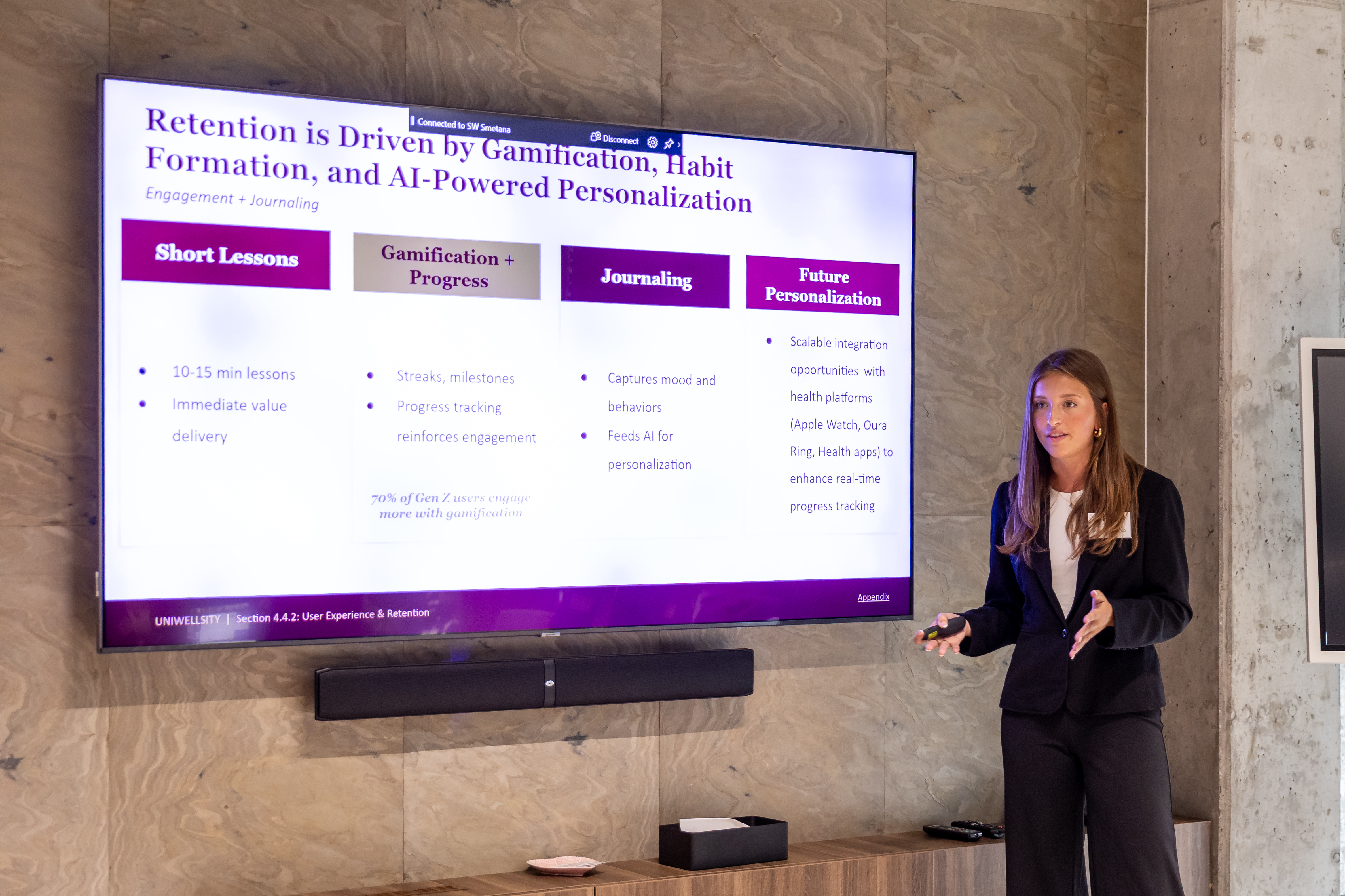 Twenty Fellows collaborated on developing a U.S. market-entry strategy for Uniwellsity, a European digital wellness company focused on emotional learning and mental well-being. As the project progressed, eight students traveled to Prague to represent the team and deliver the final presentation to the client.