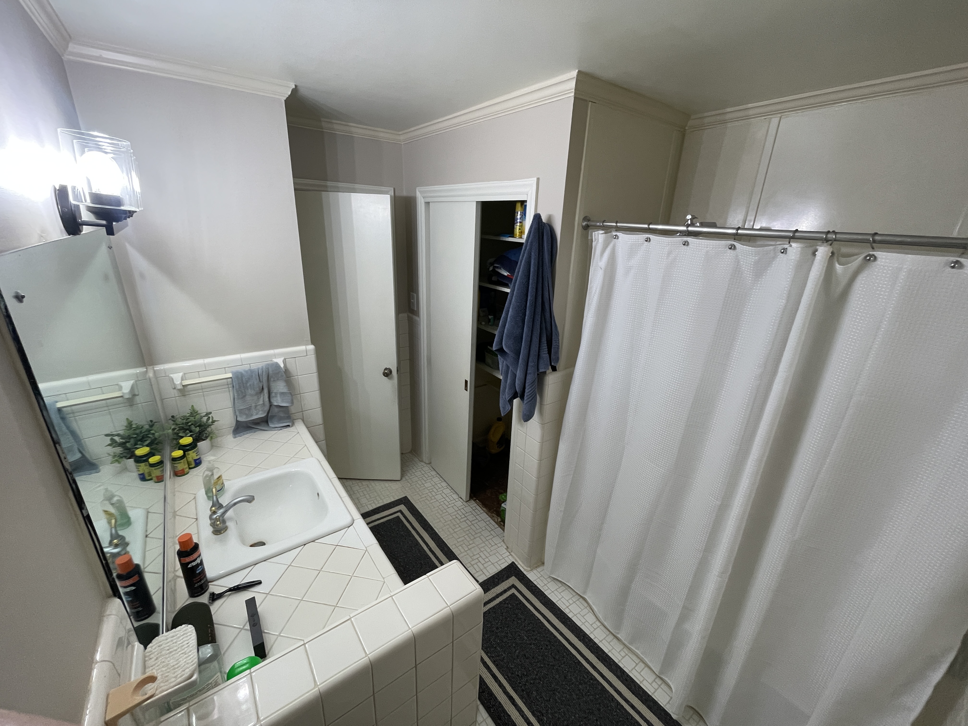 The open bedroom shares a bathroom. We are just storing stuff in the bedroom now. There is a spare queen bed and mattress if you want.