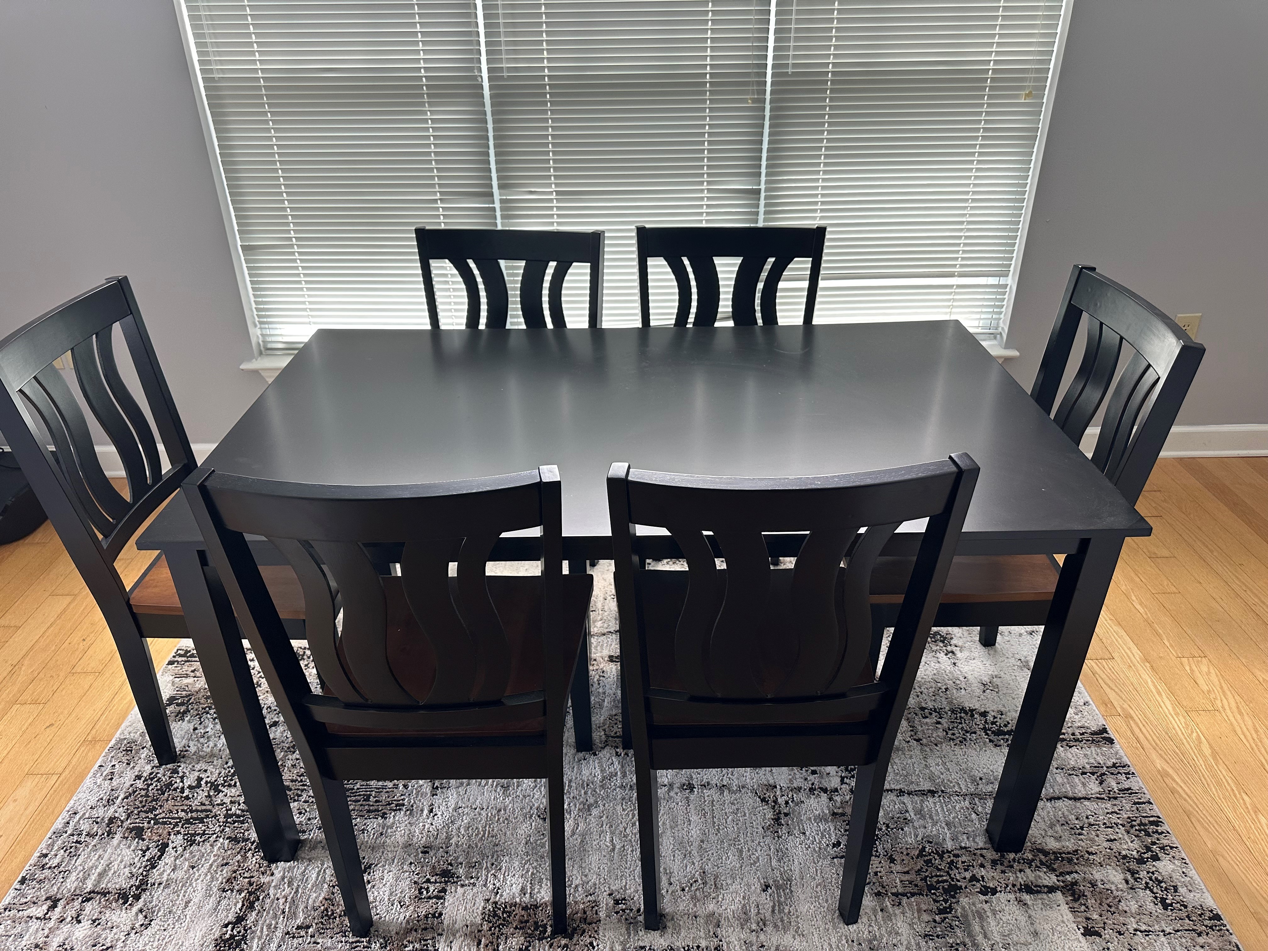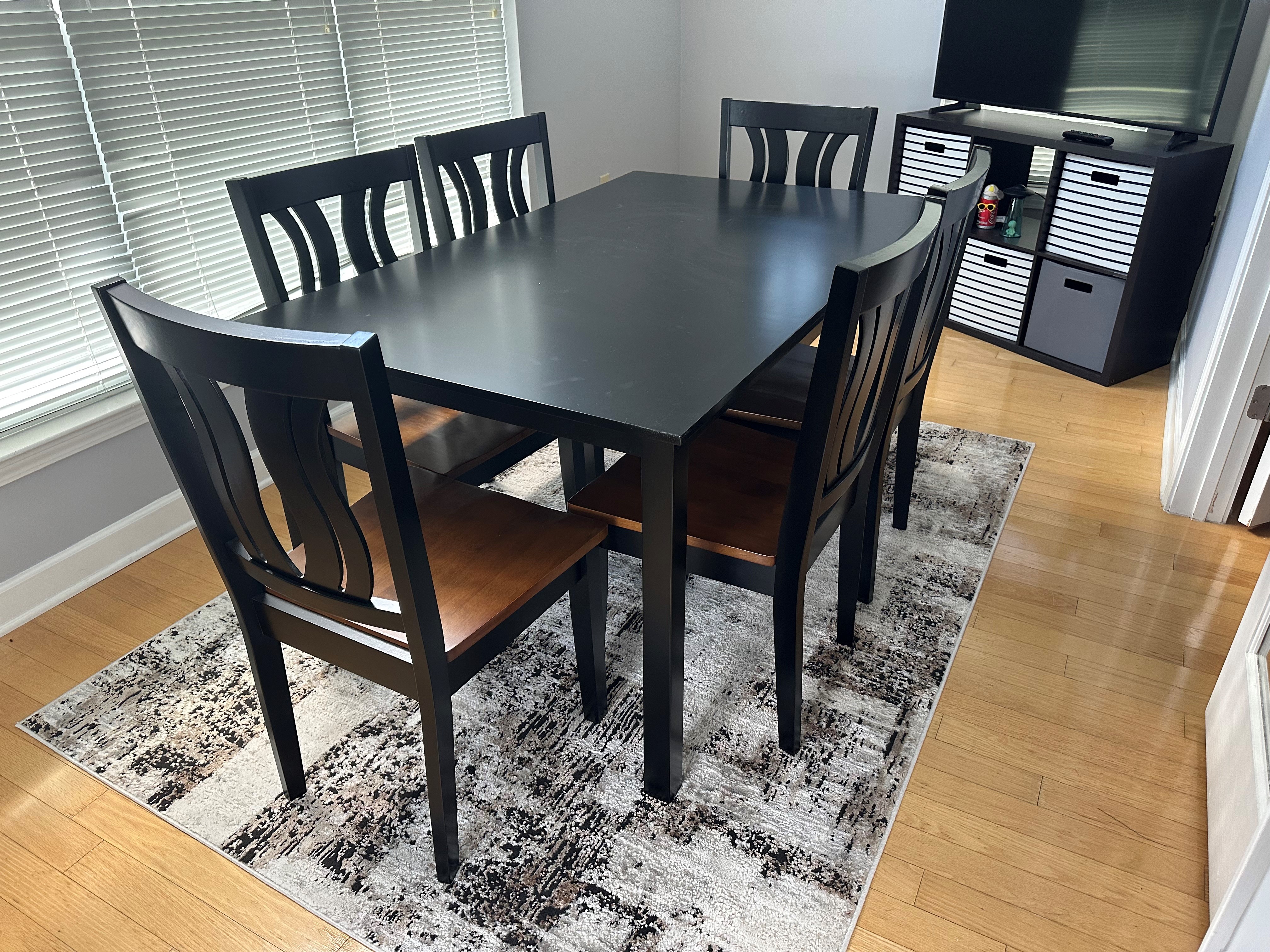 Awesome dining set and rug both purchased new at the beginning of the school year and all pieces are in great condition. Please reach out if you are interested!