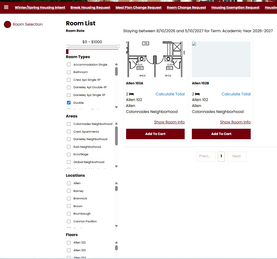 After housing selection, wait lists will open if you would like to add your name to a list for a different room style.