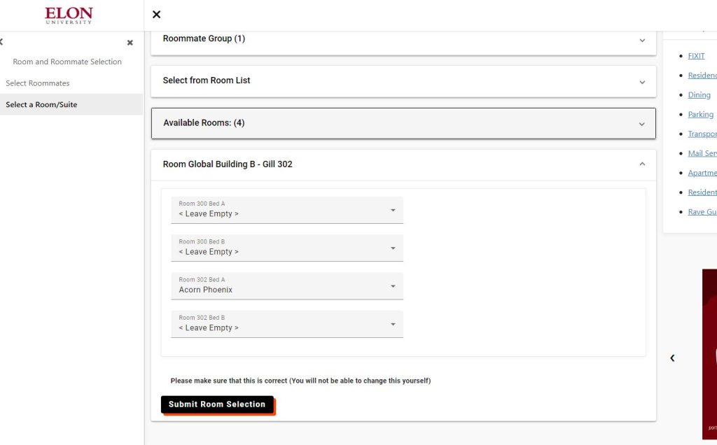 After housing selection, wait lists will open if you would like to add your name to a list for a different room style.