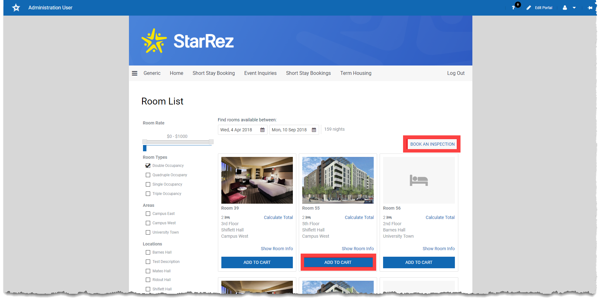 - Click ‘Add to Cart’ to add a room to cart.
