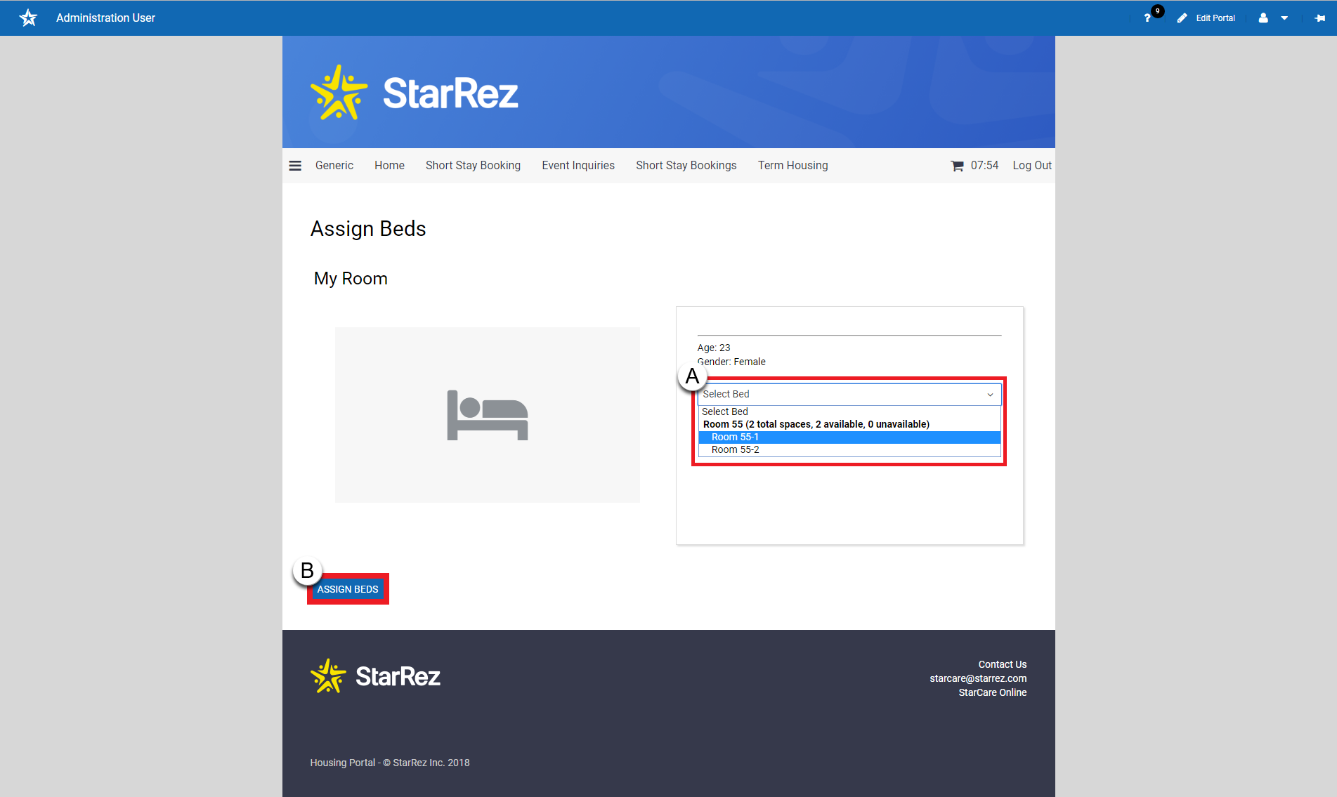 Click ‘Assign Bed’ (B).