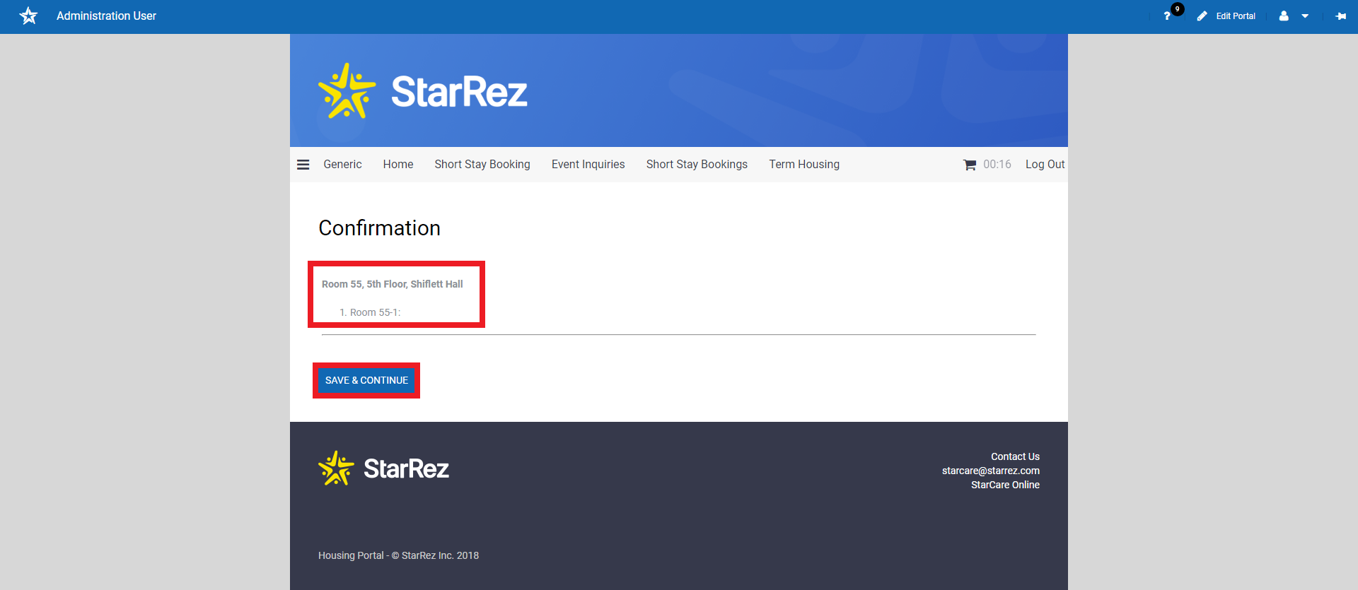 Here you are able to review information pertaining to the room you have selected and ‘Save and Continue’.