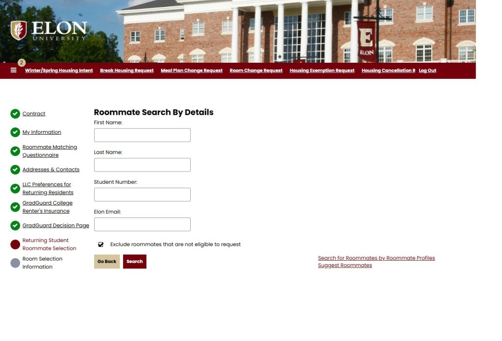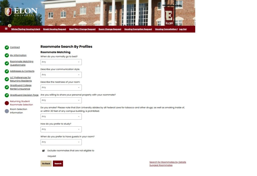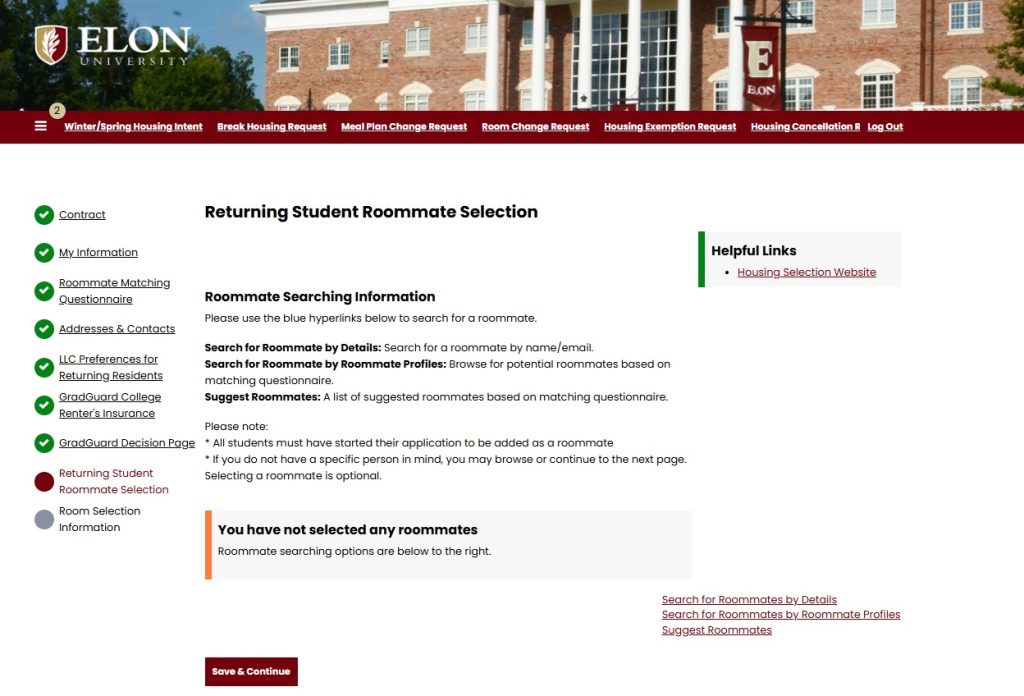 - At the end of your housing application, you’ll see a Roommate Selection page (see below)