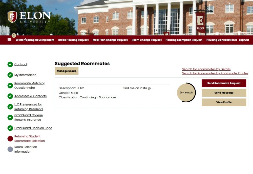 4. OR The system can suggest roommates for you based on your roommate matching questions.